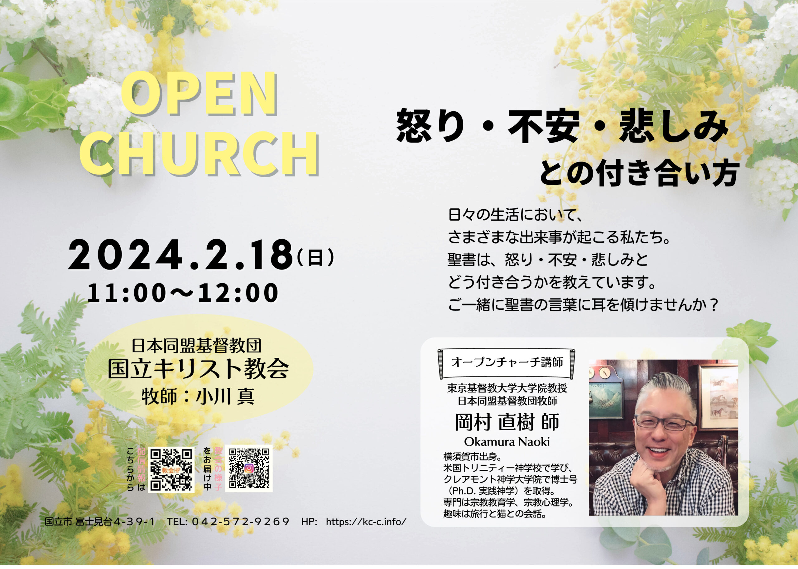 2月18日(日)オープンチャーチのテーマは『怒り・不安・悲しみとの付き合い方』です。